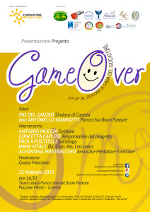 Il progetto “GAME OVER. Stop al dolore a casa del giocatore” è promosso dall’organizzazione di Volontariato “LEO”, in partnership con le Organizzazioni di Volontariato “Ali e Radici”, “Alice”, “FATTIperVOLARE”, “Civiltà 2.0”, “Koinè”, “Mezzaluna”, “Sentieri Nuovi”, “Solidarietà Cervinese”, “Fondazione Leo Amici”.